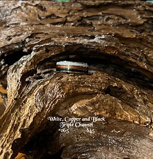 Handmade triple channel inlay ring. Stainless steel band. Space titanium, Black Opal & Moonstone